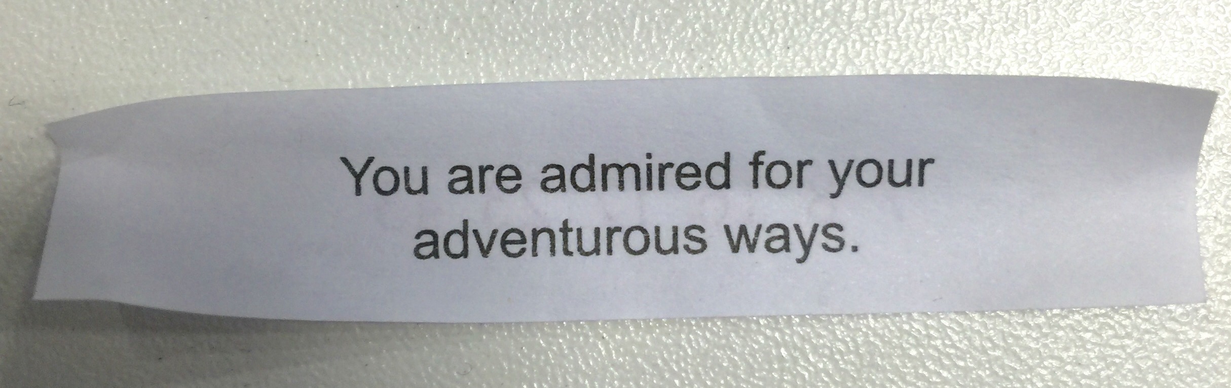 Finally, a fortune cookie confirmed to me that I’m on the right track for my next steps. It read: “You are admired for your adventurous ways.” A few people have said something similar to me. I don’t usually look for signs, but it is was a reminder that I have more footprints to leave yet on this world. Watch this space.